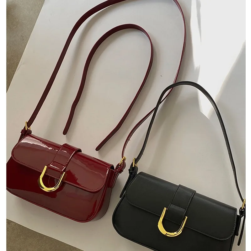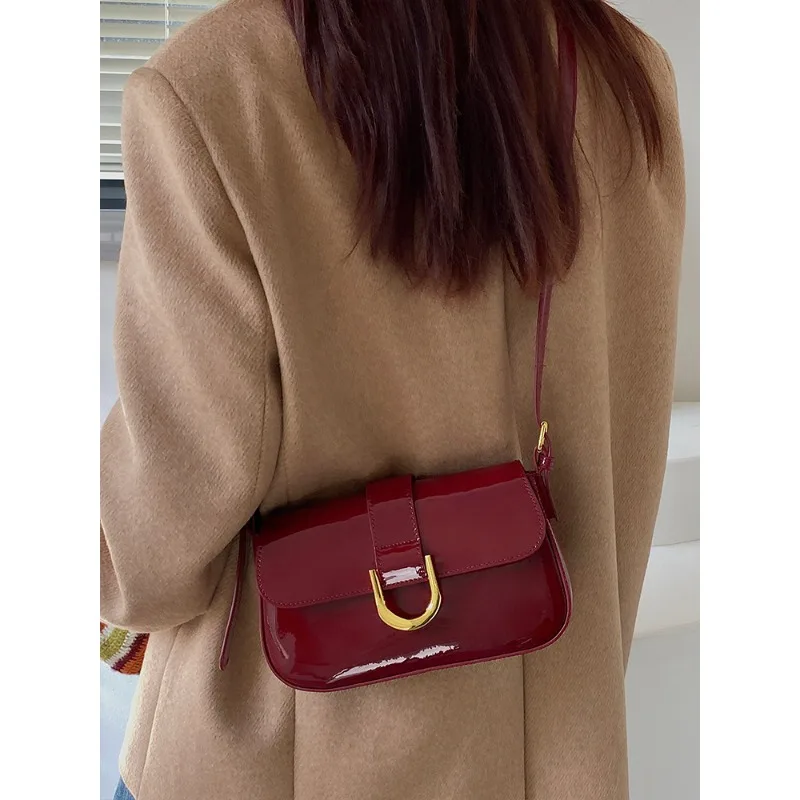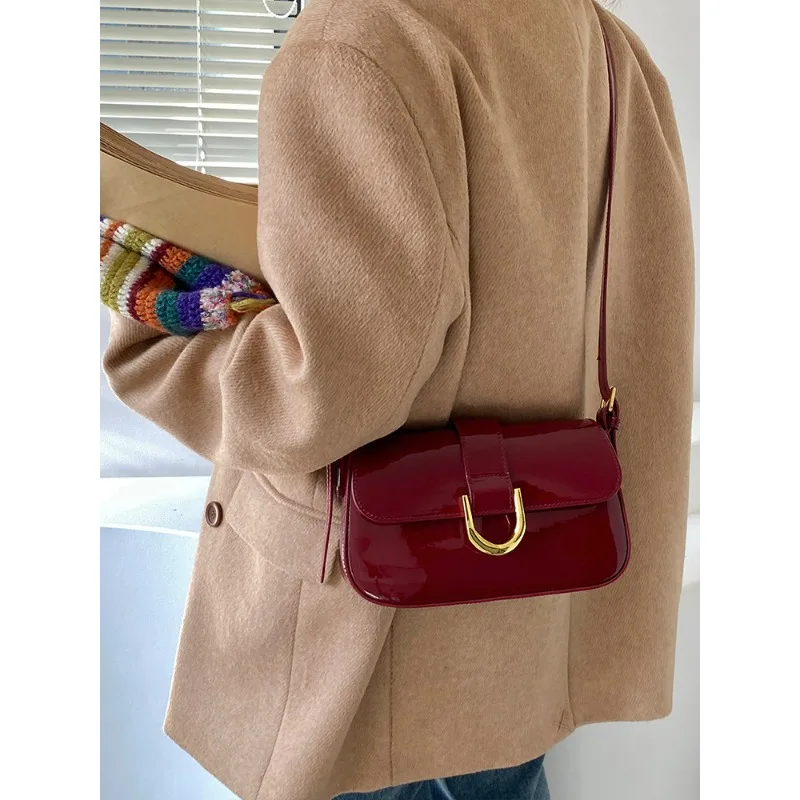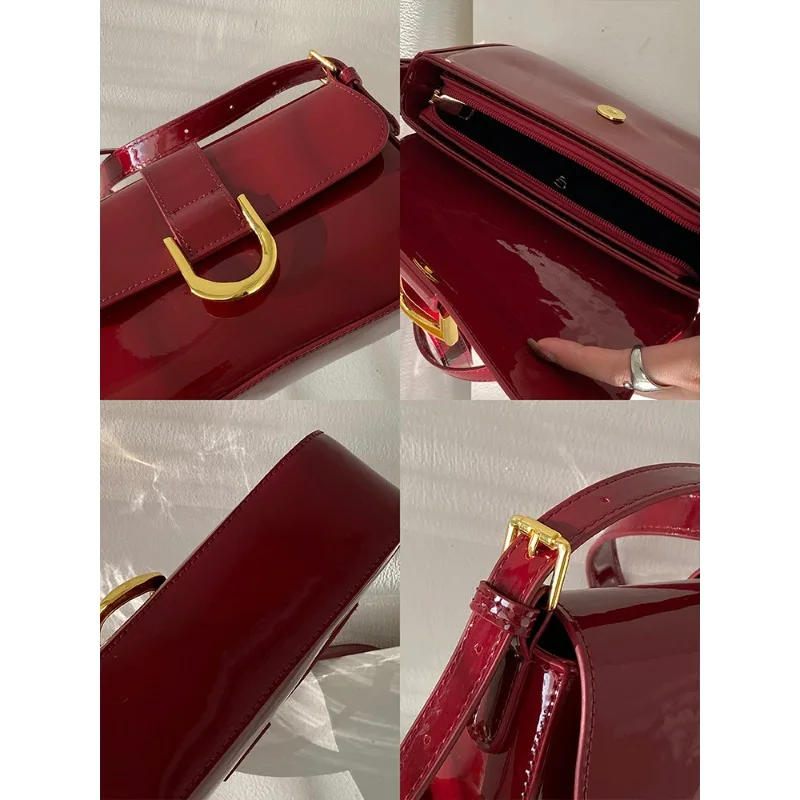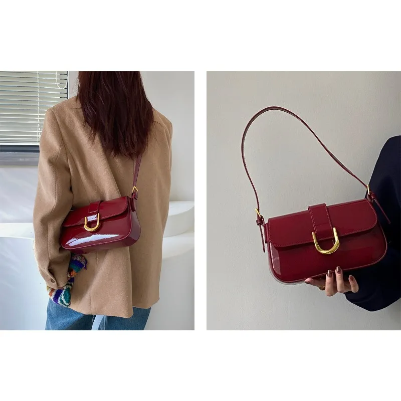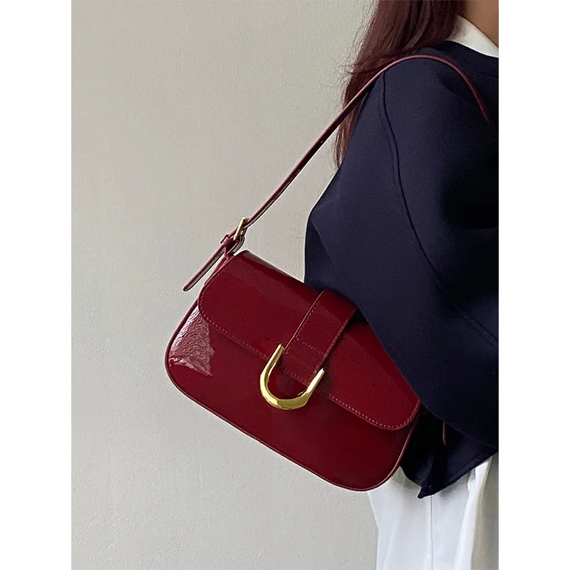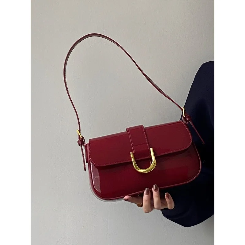 高级感包包女复古酒红色马蹄扣时尚手提腋下包单肩斜挎包一件代