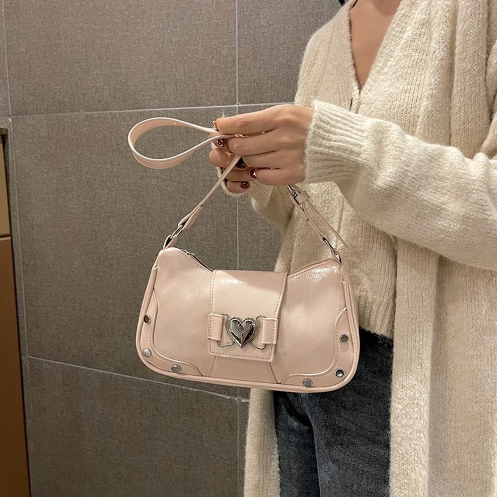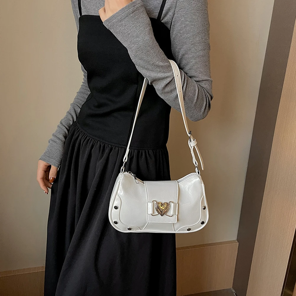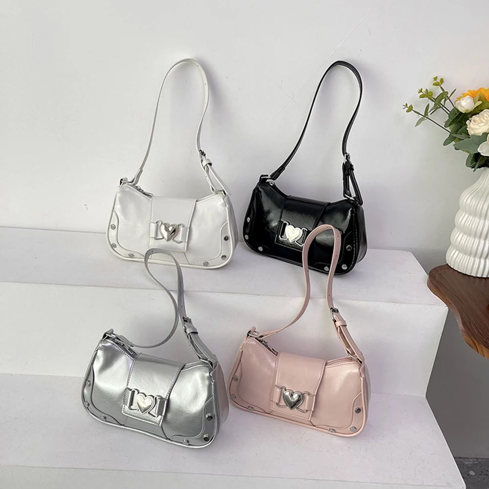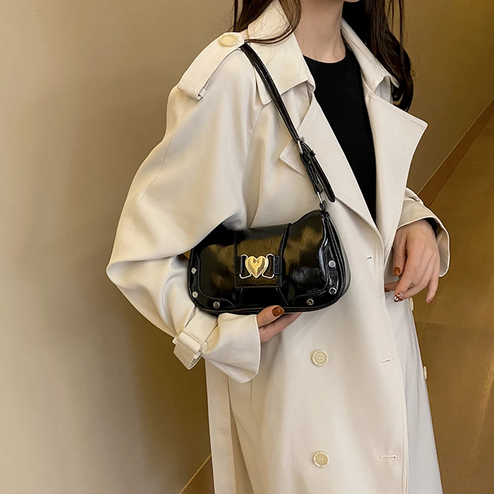 PU Leather Stylish Satchel Bags Large Capacity Women Daily Shoulder Bag Adjustable Strap Y2K Solid Color Messenger Bag
