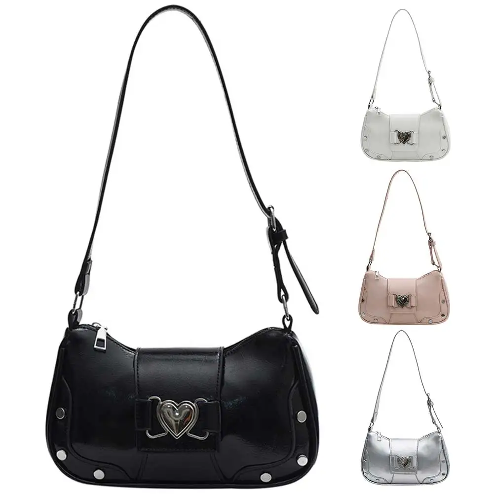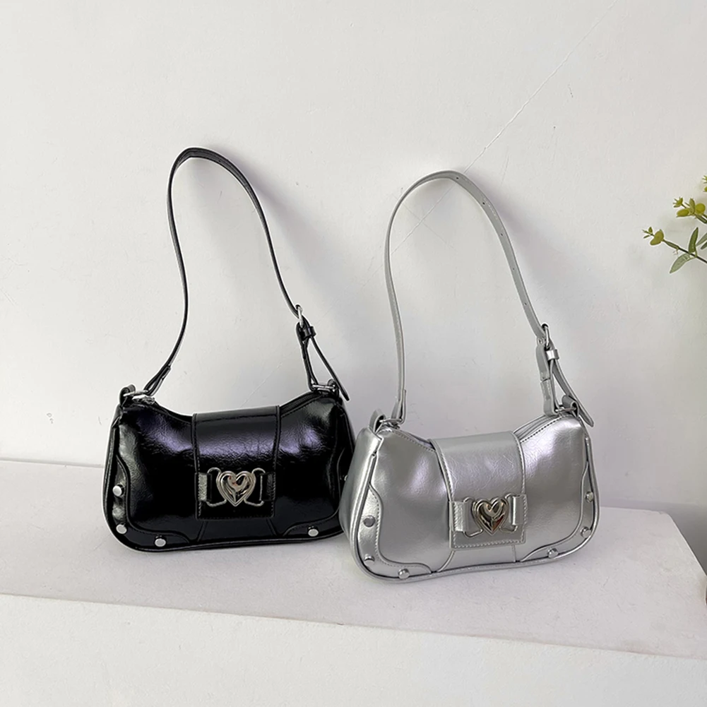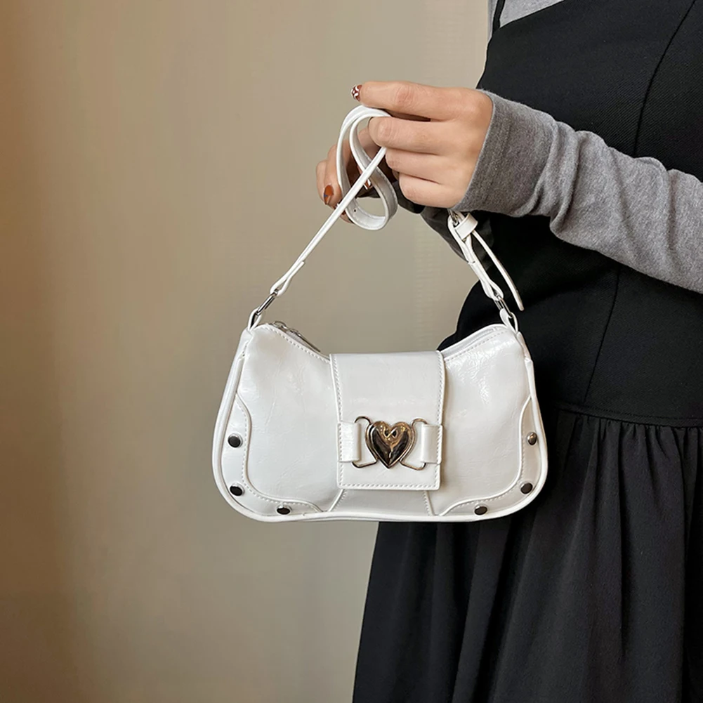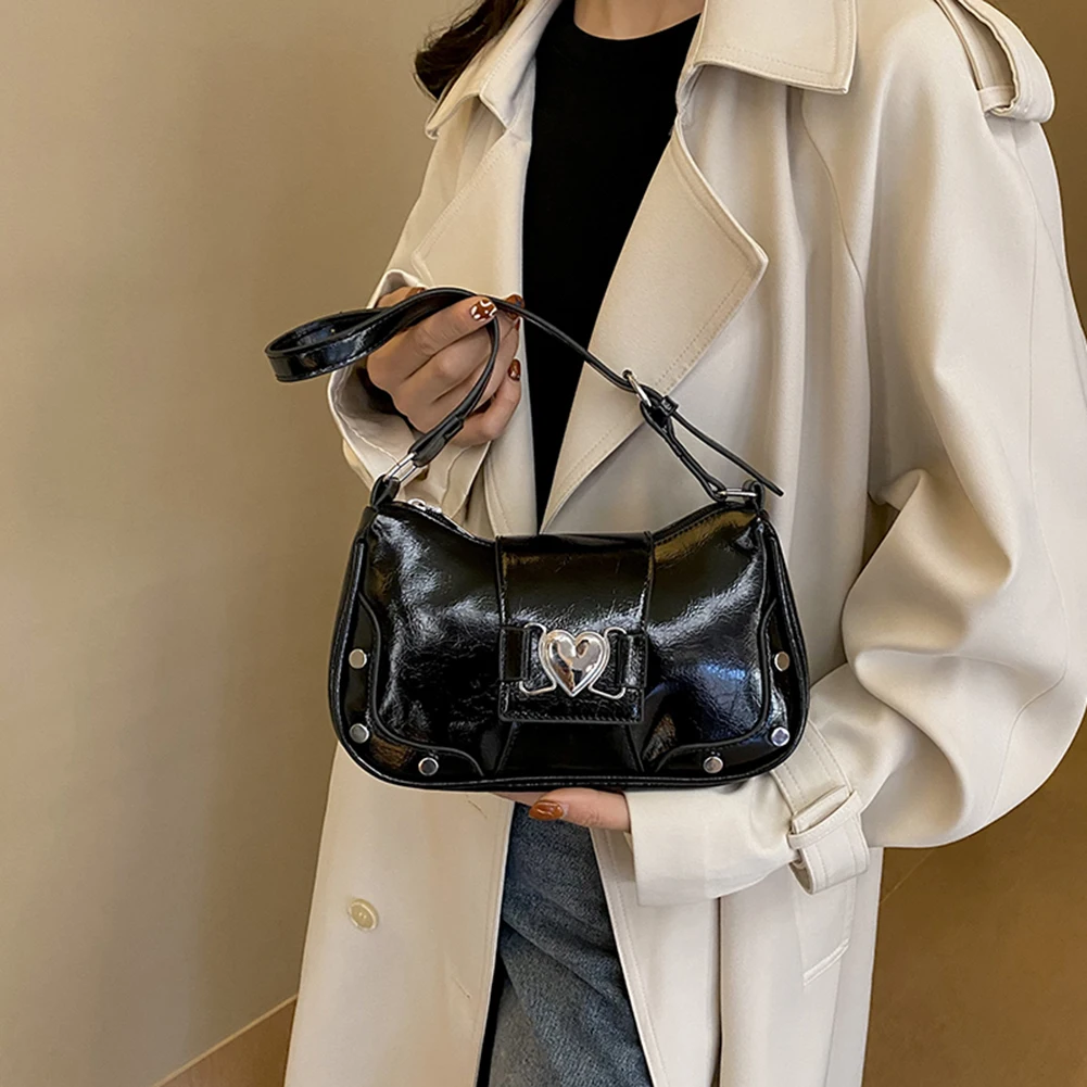 PU Leather Stylish Satchel Bags Large Capacity Women Daily Shoulder Bag Adjustable Strap Y2K Solid Color Messenger Bag